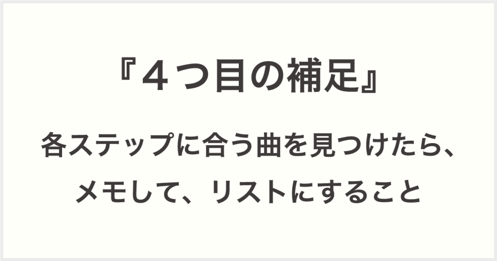 『4つ目の補足:各ステップに合う曲を見つけたら、メモして、リストにすること』