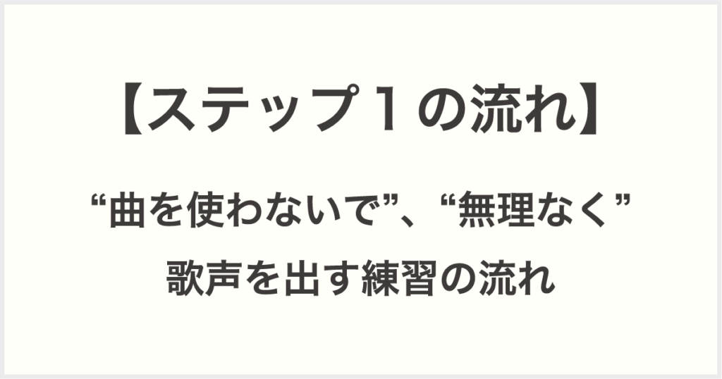 【ステップ1の流れ: “曲を使わないで”、“無理なく”、歌声を出す練習の流れ】
