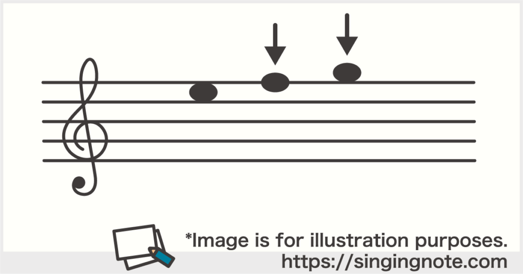 また、それ以上の音が、曲の最高音として、単発で出てくることもあります。
