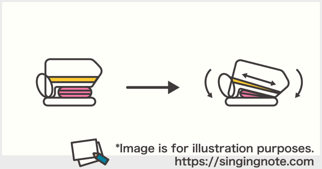ただ、その時に、喉頭の周囲の筋肉を緊張で硬くしてしまっていると、軟骨を傾ける動きを妨げてしまうのです。