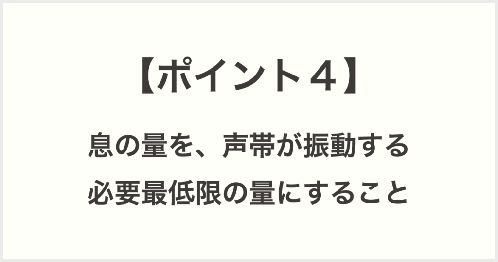 なので、ポイント4は、息の量を、声帯が振動する必要最低限の量にすることです。