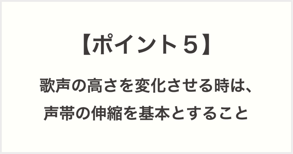 【ポイント5:歌声の高さを変化させる時は、声帯の伸縮を基本とすること】